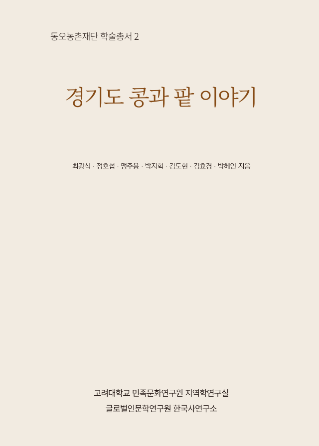 『경기도 콩과 팥 이야기』는 경기도에서 재배되고 있는 콩과 팥에 대해서 역사와 민속 관련 연구자들이 문헌조사 및 현장조사 등을 통해 공동 작업한 결과물이다. 경기도의 콩과 팥을 풀어보는 인문학적 탐색이기도 하다. 콩과 팥을 단순한 먹거리로만 다루지 않고, 역사적 기록과 민속학적 자료, 문학과 생활문화를 아우르며 그 다층적인 의미를 조명하고자 하였다.