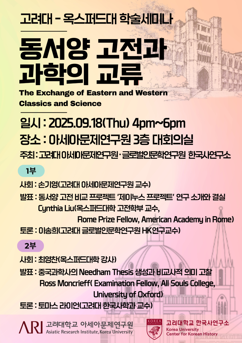 ㆍ주최: 고려대학교 글로벌인문학연구원, 고려대학교 아세아문제연구원, 고려사학회